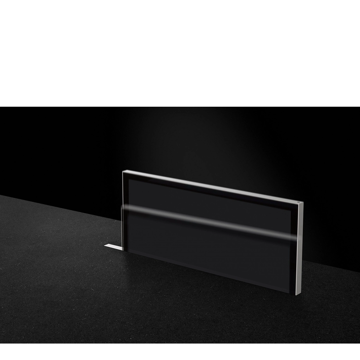 - Entspiegeltes, 2-seitig beschichtetes, 2 mm starkes Glas mit schwarzem Rand (Vorderseite)