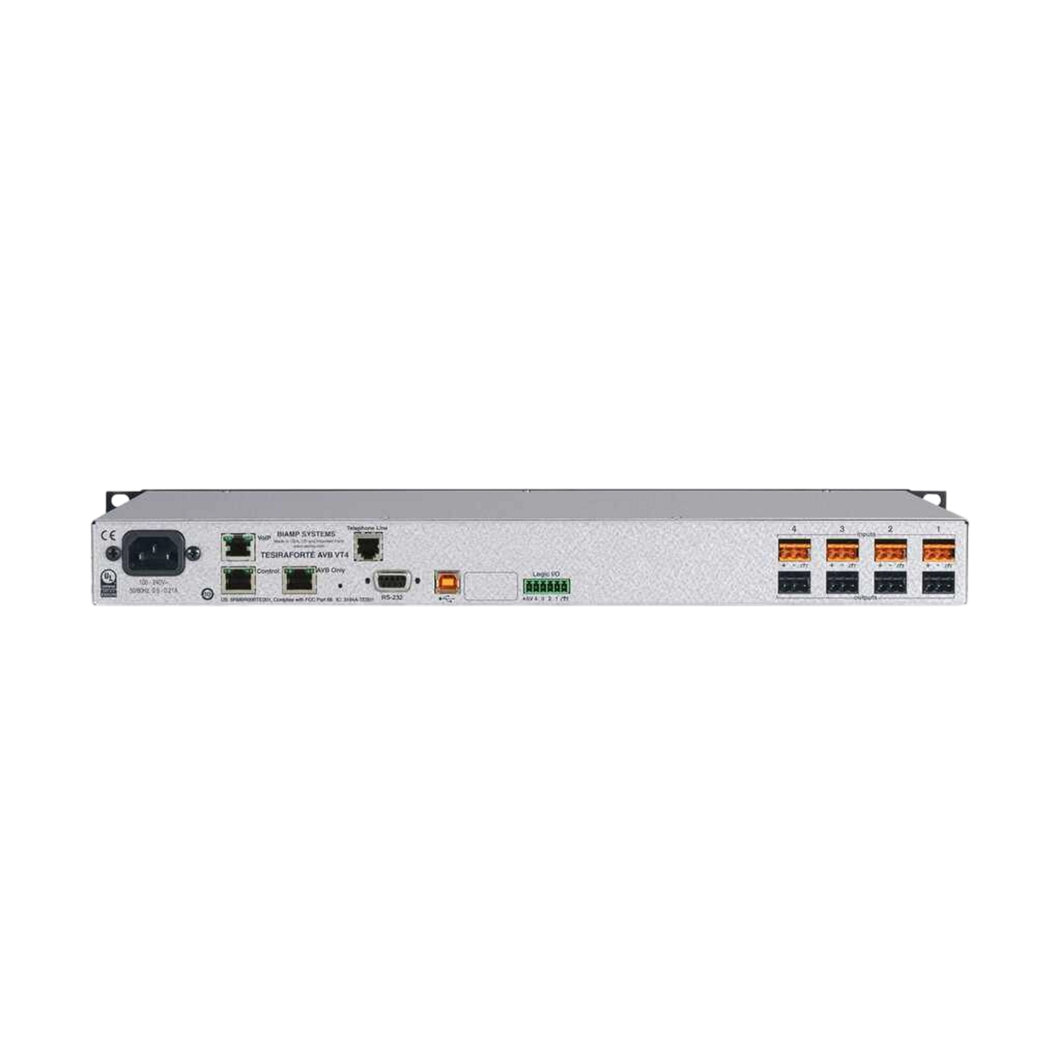 digitaler Audioserver, – 4 Eingänge mit AEC, 4 Ausgänge, USB 2.0 und integriertem VoIP und POTS Telefonhybrid mit 32 Kanal DANTE Schnittstelle