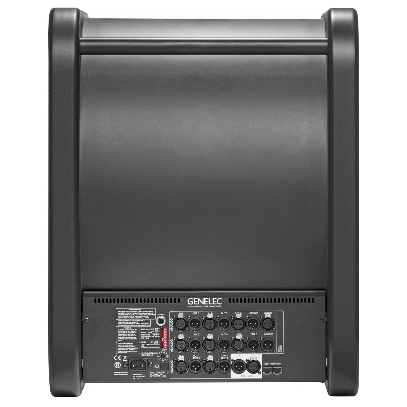 Digitaler Subwoofer für Surround bis 7.1 und Stereo (8340, 8350, 8351, 8260), DSP, Netzwerkanschluss, 19 Hz – 100 Hz (-6 dB) / LFE 19 Hz – 150 Hz (-6 dB), 400 Watt (Class-D), 113 dB SPL (1 m), 12“, 625 x 555 x 490 mm (H x B x T), 48 kg, anthrazit
