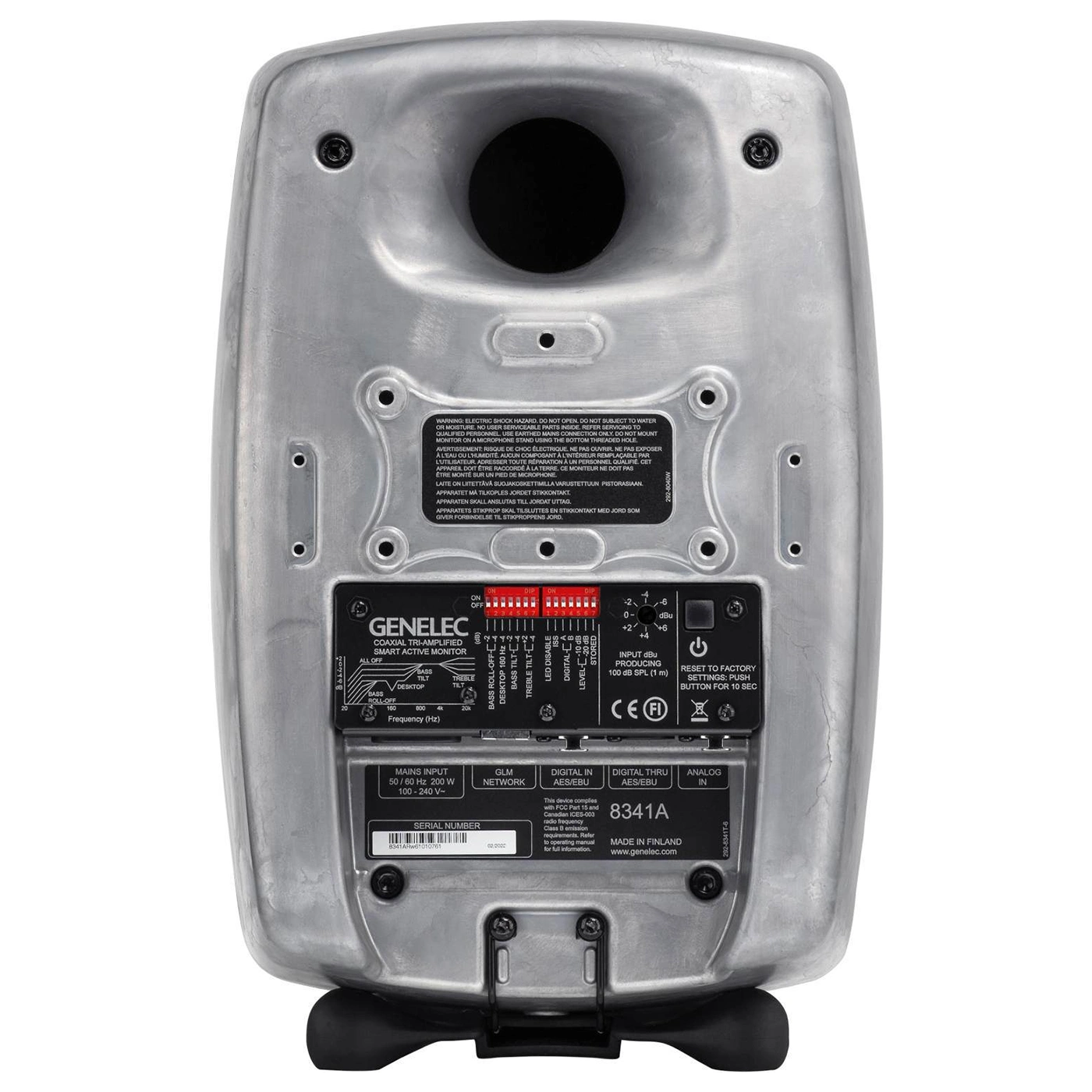 Studiomonitor, DSP, Netzwerkanschluss, Alu-Gehäuse, 38 Hz – 37 kHz (-6 dB), 45 Hz – 20 kHz (±1,5 dB), 110 dB SPL (1 m), Tiefton 2x 6,63“ x 3,5“ (250 W/Class-D), Koax-Mittel-Hochton-Einheit mit 3,5“ (150 W/Class-D) und 3/4“ (150 W/Class-D), 370 x 237 x 243 mm (H x B x T), 9,8 kg, Aluminium Raw