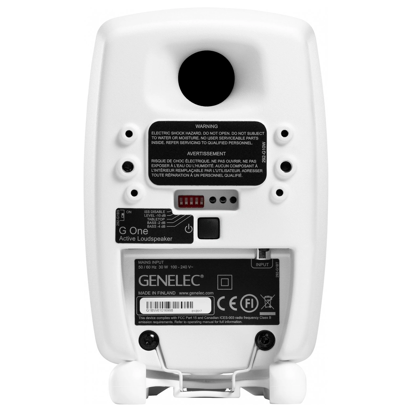 Aktiver Lautsprecher, Alu-Gehäuse, analoger RCA Eingang, 67 Hz – 25 kHz (-6 dB), 74 Hz – 20 kHz (-2,5 dB), 96 dB SPL (0,5 m), Tiefton 3“ (25 W/Class-D), Hochton 0,75“ (25 W/Class-D), 181 x 121 x 114 mm (H x B x T), 1,5 kg, weiß