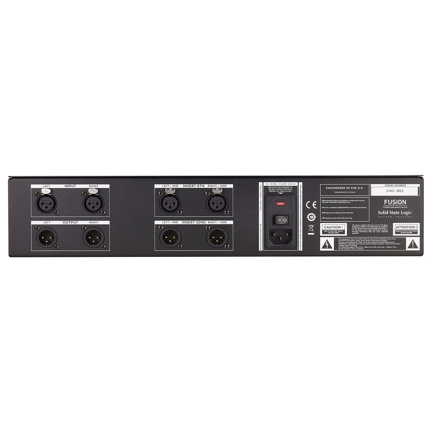 - Variabel nutzbarer XLR Stereo Insert für L/R Stereo Mix- oder Mid/Side Signalbearbeitung