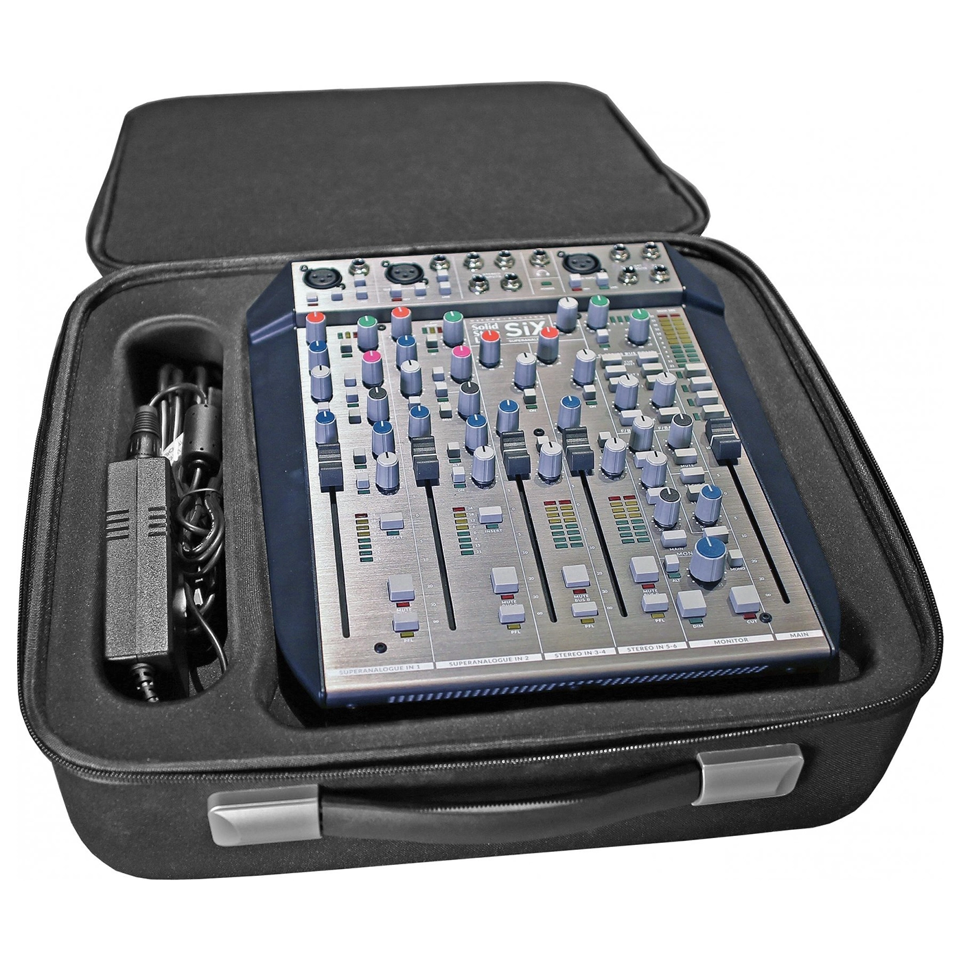 Hochwertige Tragetasche für SSL SiX mit Reißverschluß, Tragegriff und samtberzogenen Formschalen für Mischpult, Netzteil und Kabel, schwarz, 40 x 36 x 20cm